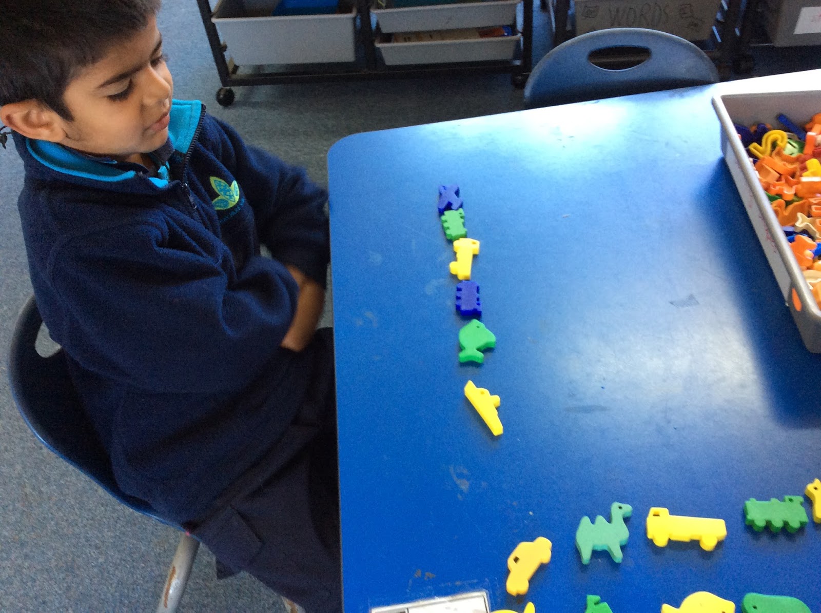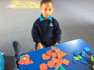 In Algebra, Hanly Class is learning how to complete a given pattern. We used shapes and colours to repeat the patterns.